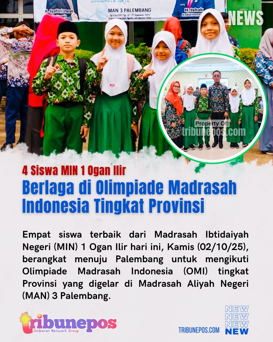 PALEMBANG, TRIBUNEPOS – Empat siswa terbaik dari Madrasah Ibtidaiyah Negeri (MIN) 1 Ogan Ilir hari ini, Kamis (02/10/25), berangkat menuju Palembang untuk mengikuti Olimpiade Madrasah Indonesia (OMI) tingkat Provinsi yang digelar di Madrasah Aliyah Negeri (MAN) 3 Palembang.