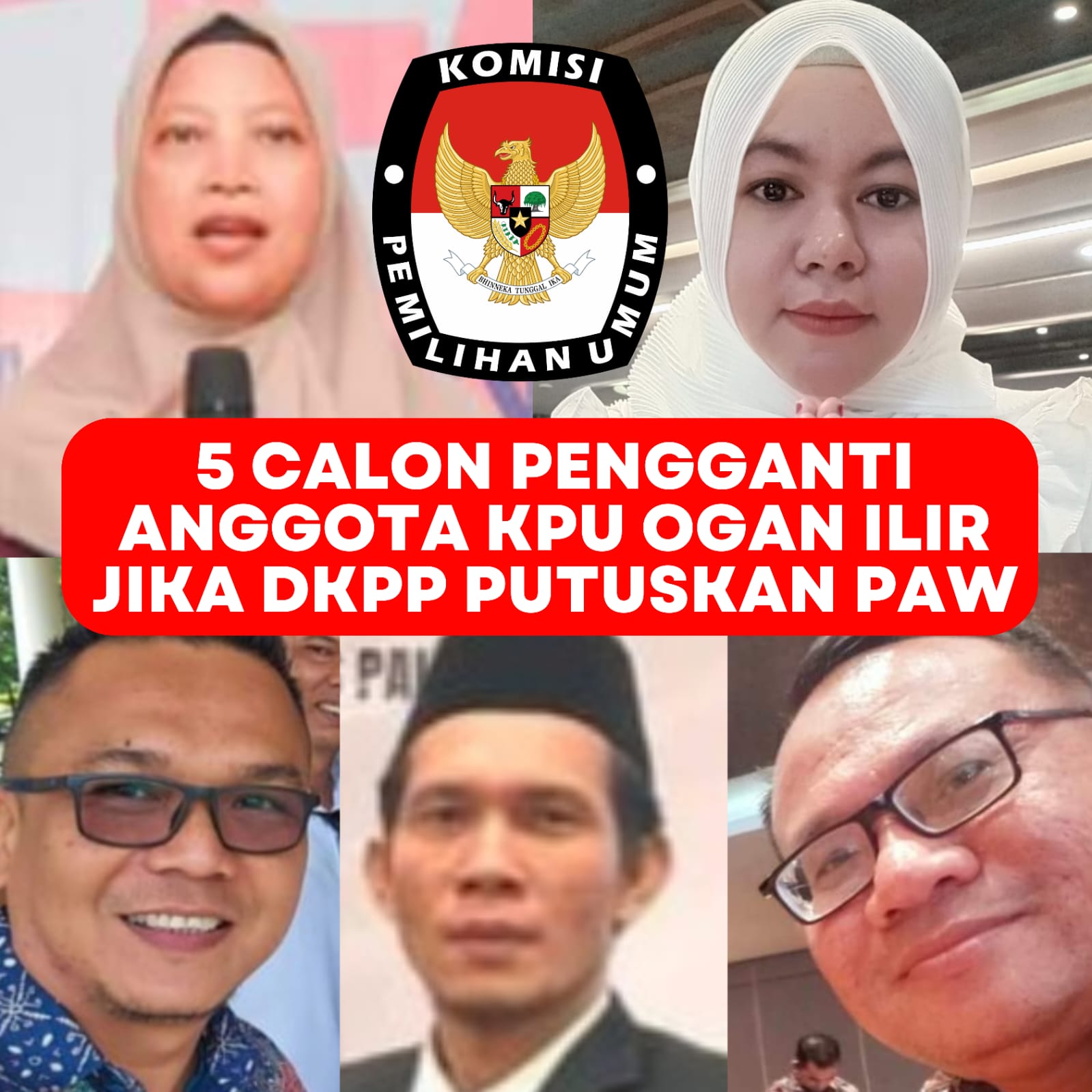 Berikut adalah nama-nama lima calon pengganti anggota KPU Ogan Ilir jika DKPP memutuskan pemberhentian secara tidak hormat: