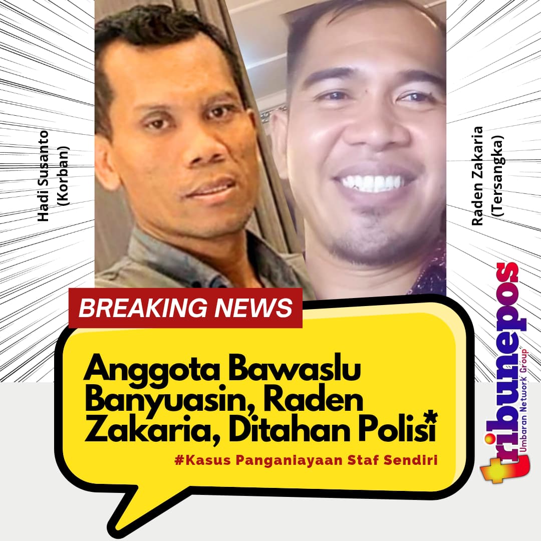 Raden Zakaria ditetapkan sebagai tersangka dalam kasus dugaan penganiayaan terhadap pegawai negeri sipil (PNS) Bawaslu Banyuasin, Hadi Susanto.
