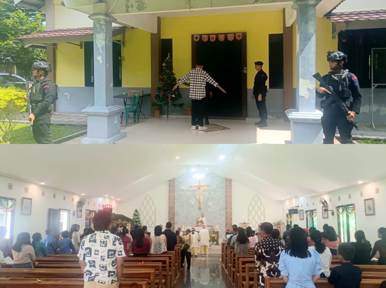 Brimob Kompi 2 Batalyon C Pelopor Sterilisasi Gereja Katolik Stasi Hati Kudus Yesus Jelang Ibadah Natal