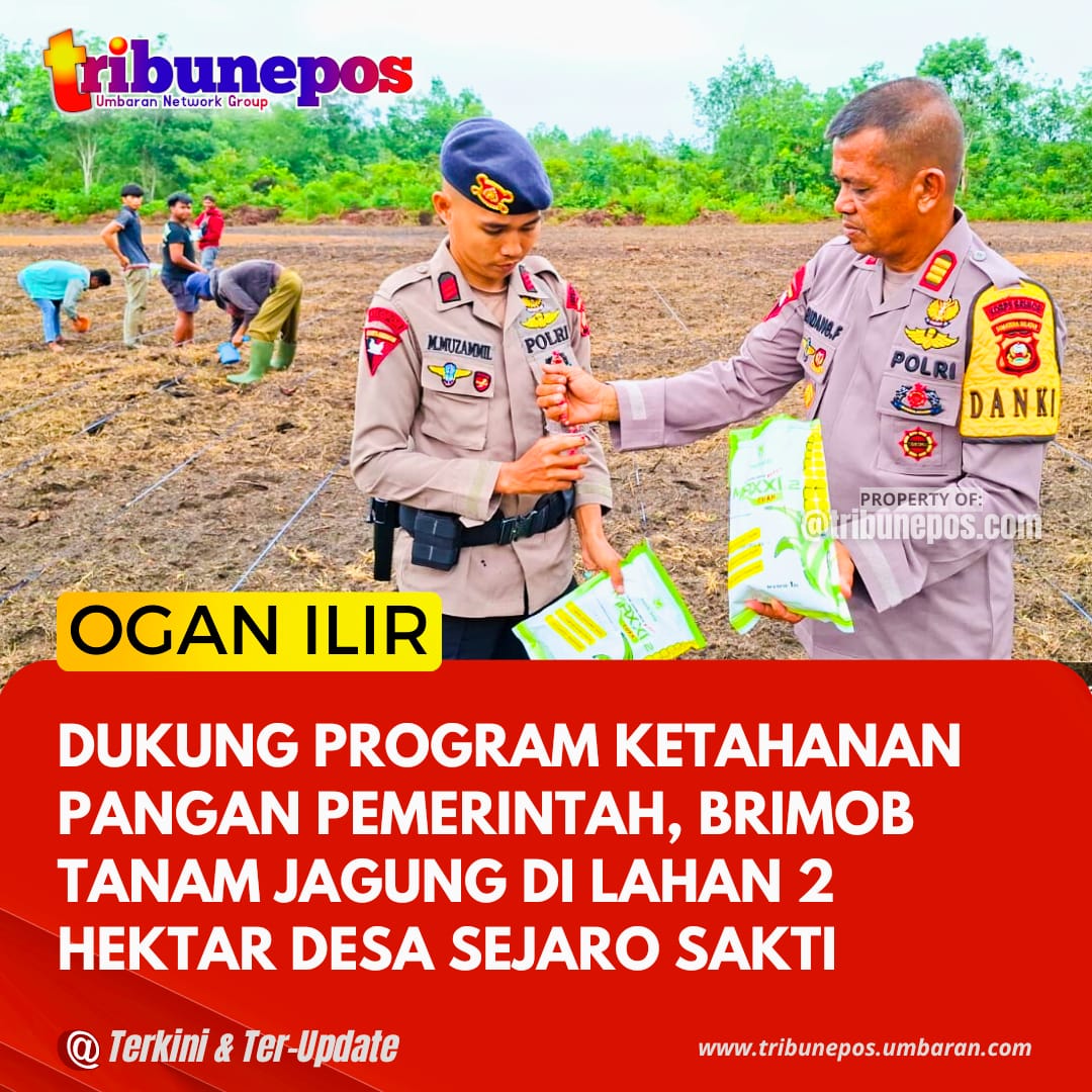 OGAN ILIR, TRIBUNEPOS — Di bawah sinar matahari pagi yang hangat, puluhan personel Brimob Kompi 2 Batalyon C Pelopor tampak sibuk menanam bibit jagung di lahan seluas dua hektar di Desa Sejaro Sakti, Selasa (28/10/2025).