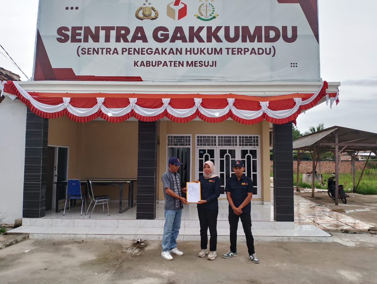 Laporan itu diterima oleh Gakumdu Kabupaten Mesuji dengan Nomor 001/PL/PB/KAB.08.13/XI/2024 dengan Nomor online laporan 003/LP/PB/Kab/08.13/XI/2024.