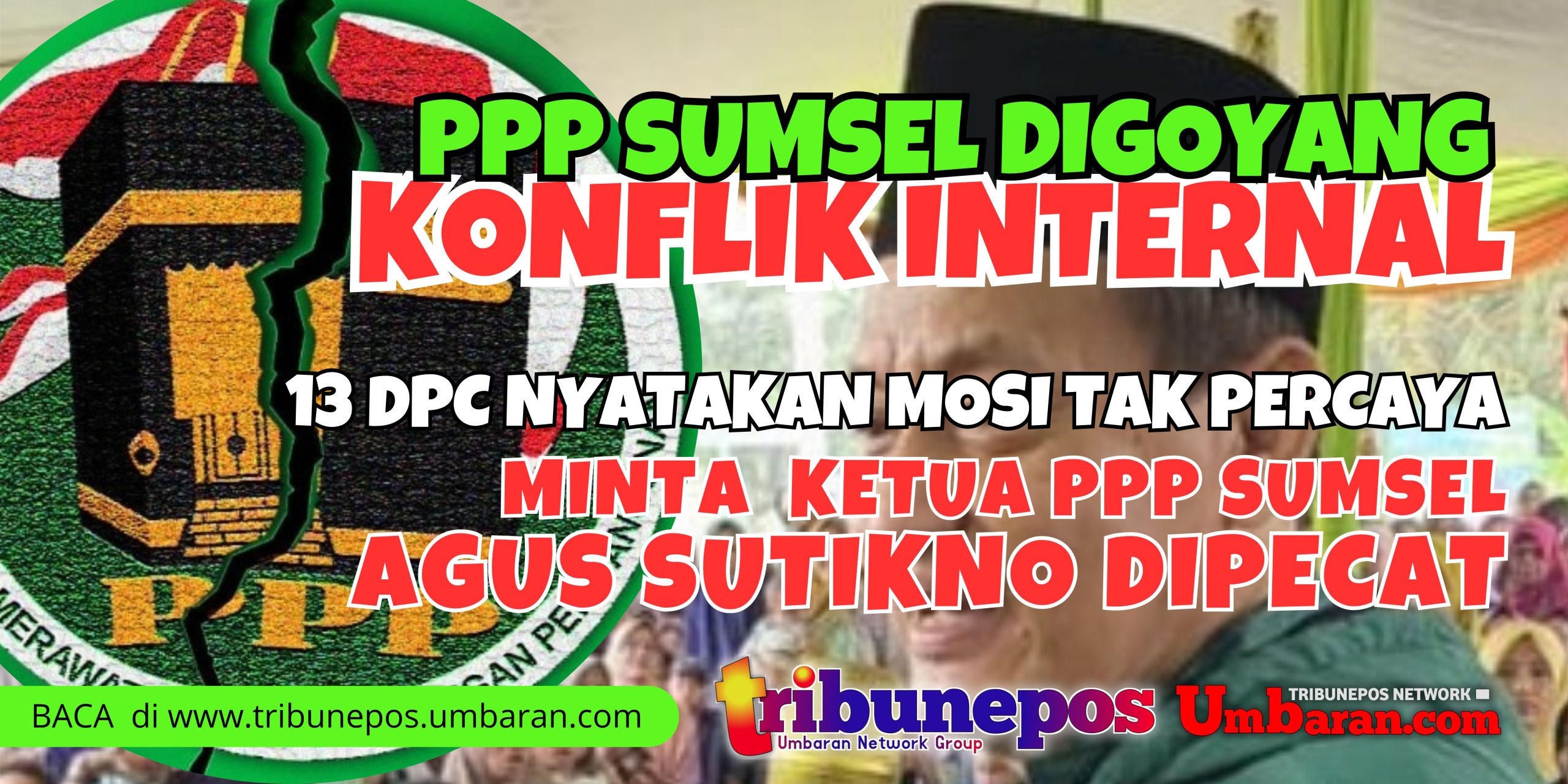 TRIBUNEPOS.UMBARAN.COM | GILIRAN Partai Persatuan Pembangunan (PPP) Sumsel dilanda konflik internal. Sebanyak 13 pengurus DPC PPP menyatakan mosi tidak percaya kepada Ketua DPW PPP Sumsel, Agus Sutikno. Mereka menuntut DPP PPP memberhentikan Agus dari kepengurusan.