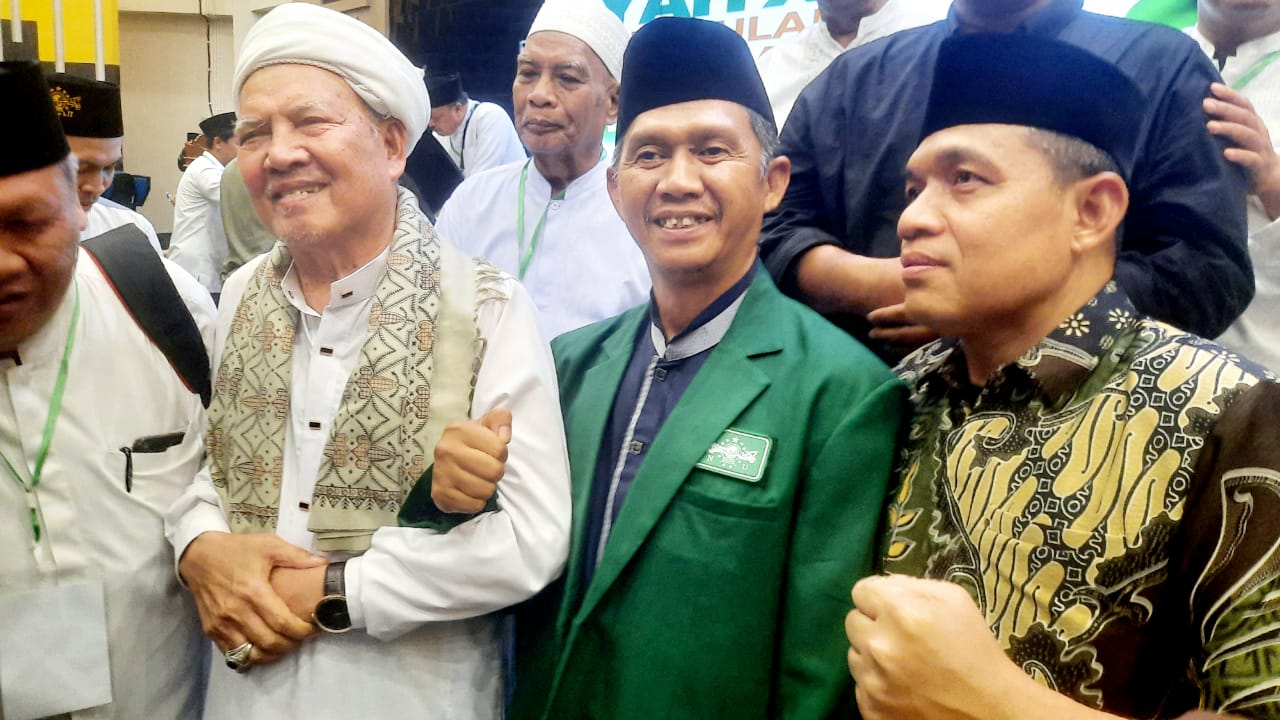 FOTO: Ketua PWNU Sumsel terpilih KH Muflihul Hasan, S.Ag, M.Si (tengah pakai jas hijau) dan Ketua Rois Syuriah terpilih KH. M. Dainawi Gerentam Boemi (baju putih pake sorban) saat foto bersama usai terpilih keduanya pada Konferwil Nahdatul Ulama Sumatera Selatan ke-23 di Kampus UIN Jakabaring, Palembang, Senin, 23 September 2024. (Dok. Tribunepos.umbaran.com)