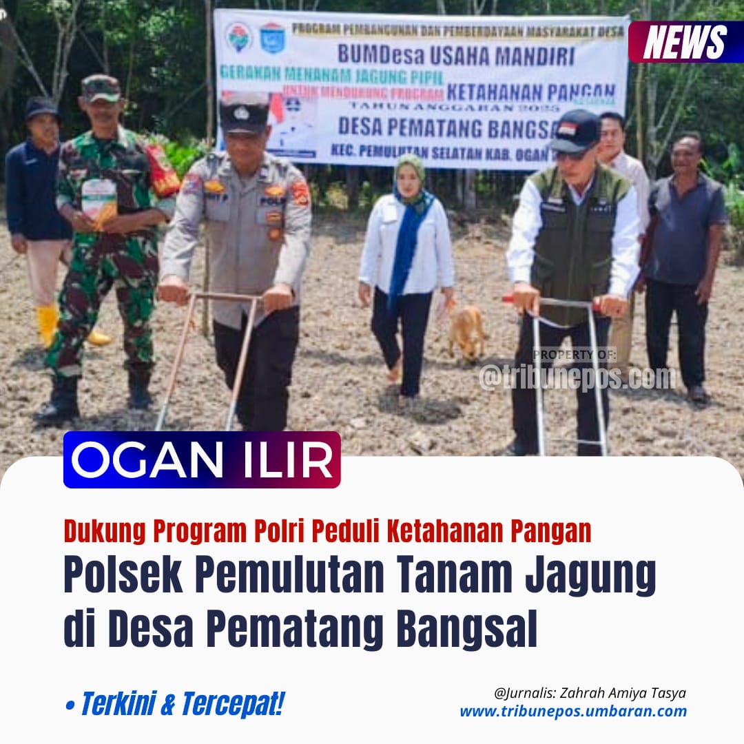 OGAN ILIR, TRIBUNEPOS — Dalam upaya memperkuat program ketahanan pangan nasional, Polsek Pemulutan Polres Ogan Ilir bersama Forkopimcam Pemulutan Selatan melaksanakan kegiatan penanaman jagung pipil di Desa Pematang Bangsal, Kecamatan Pemulutan Selatan, Kabupaten Ogan Ilir, Rabu (15/10/2025).