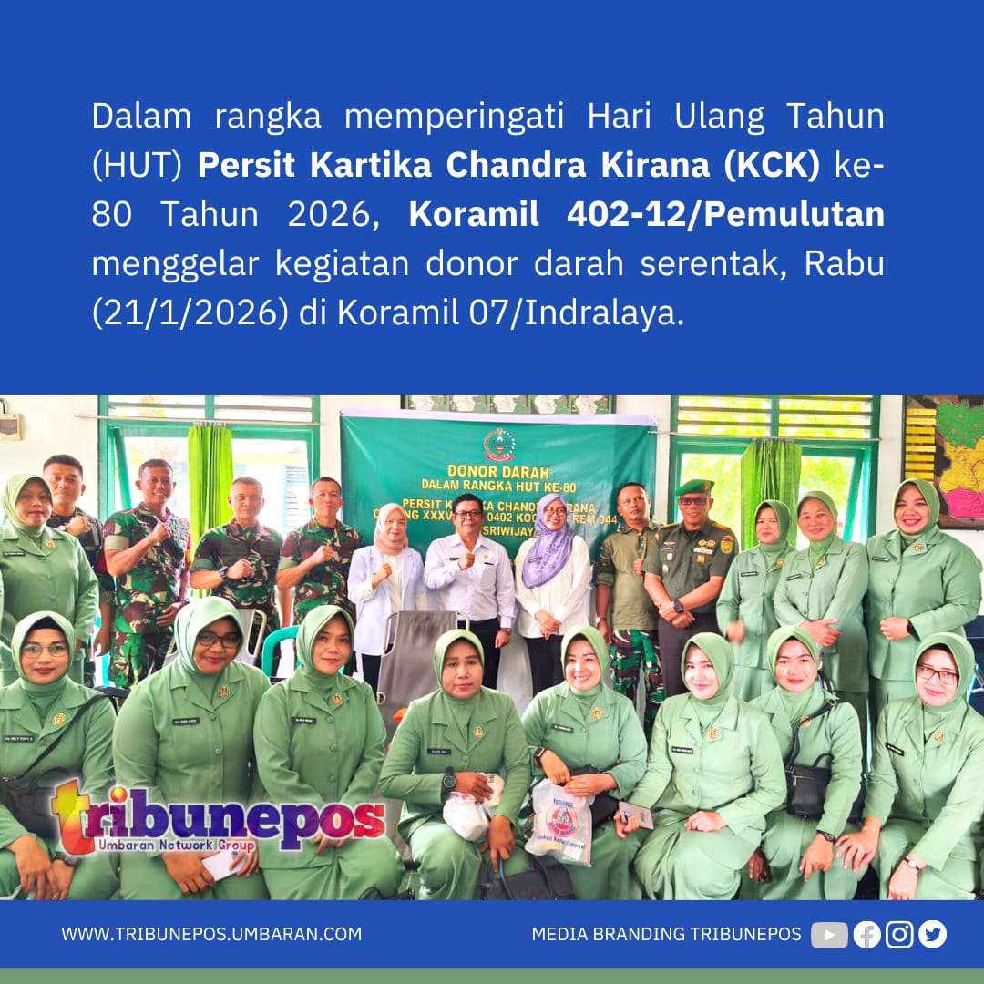 OGAN ILIR, TRIBUNEPOS.COM — Dalam rangka memperingati Hari Ulang Tahun (HUT) Persit Kartika Chandra Kirana (KCK) ke-80 Tahun 2026, Koramil 402-12/Pemulutan menggelar kegiatan donor darah serentak, Rabu (21/1/2026) di Koramil 07/Indralaya.