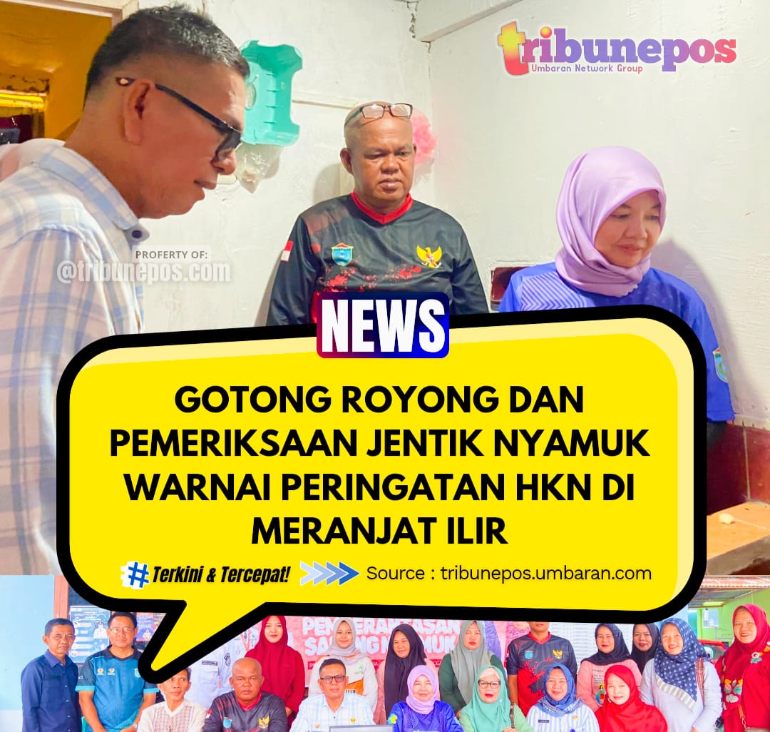 OGAN ILIR, TRIBUNEPOS — Pemerintah Desa Meranjat Ilir menggelar kegiatan gotong royong dan pemeriksaan jentik nyamuk dalam rangka memperingati Hari Kesehatan Nasional (HKN), Jumat (14/11/2025).