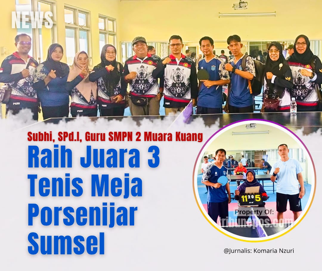 Guru SMPN 2 Muara Kuang itu baru saja memastikan dirinya pulang dengan gelar juara 3 tenis meja putra pada ajang Pekan Olahraga dan Seni Pelajar (Porsenijar) tingkat Provinsi Sumatera Selatan.