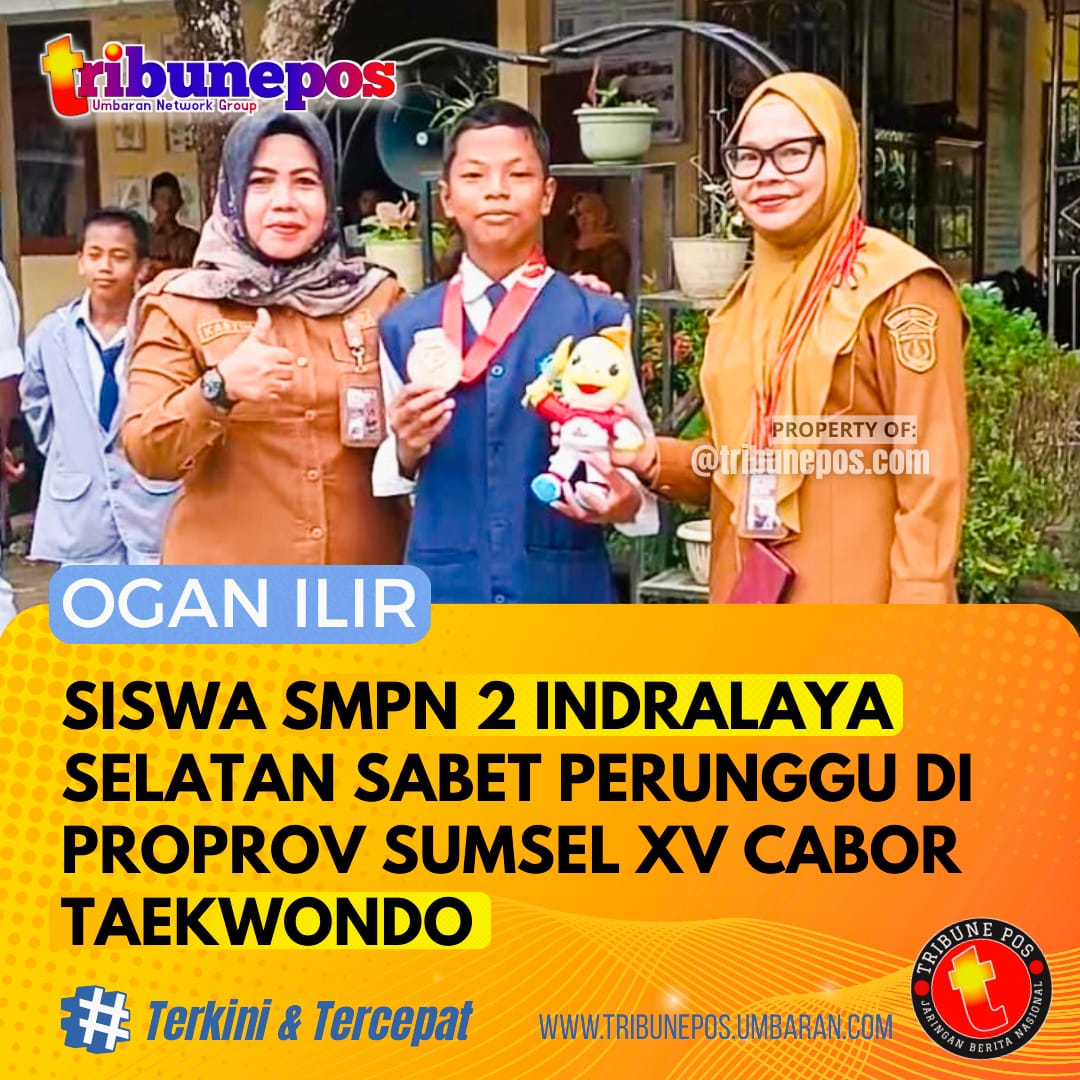 OGAN ILIR, TRIBUNEPOS – Prestasi membanggakan kembali ditorehkan siswa SMP Negeri 2 Indralaya Selatan. M. Akhram As’shadi, siswa kelas IX, berhasil meraih juara III dan membawa pulang medali perunggu dalam cabang olahraga bela diri taekwondo pada Pekan Olahraga Provinsi (Proprov) Sumatera Selatan ke-XV yang digelar di Kabupaten Musi Banyuasin, 24 Oktober – 1 November 2025.