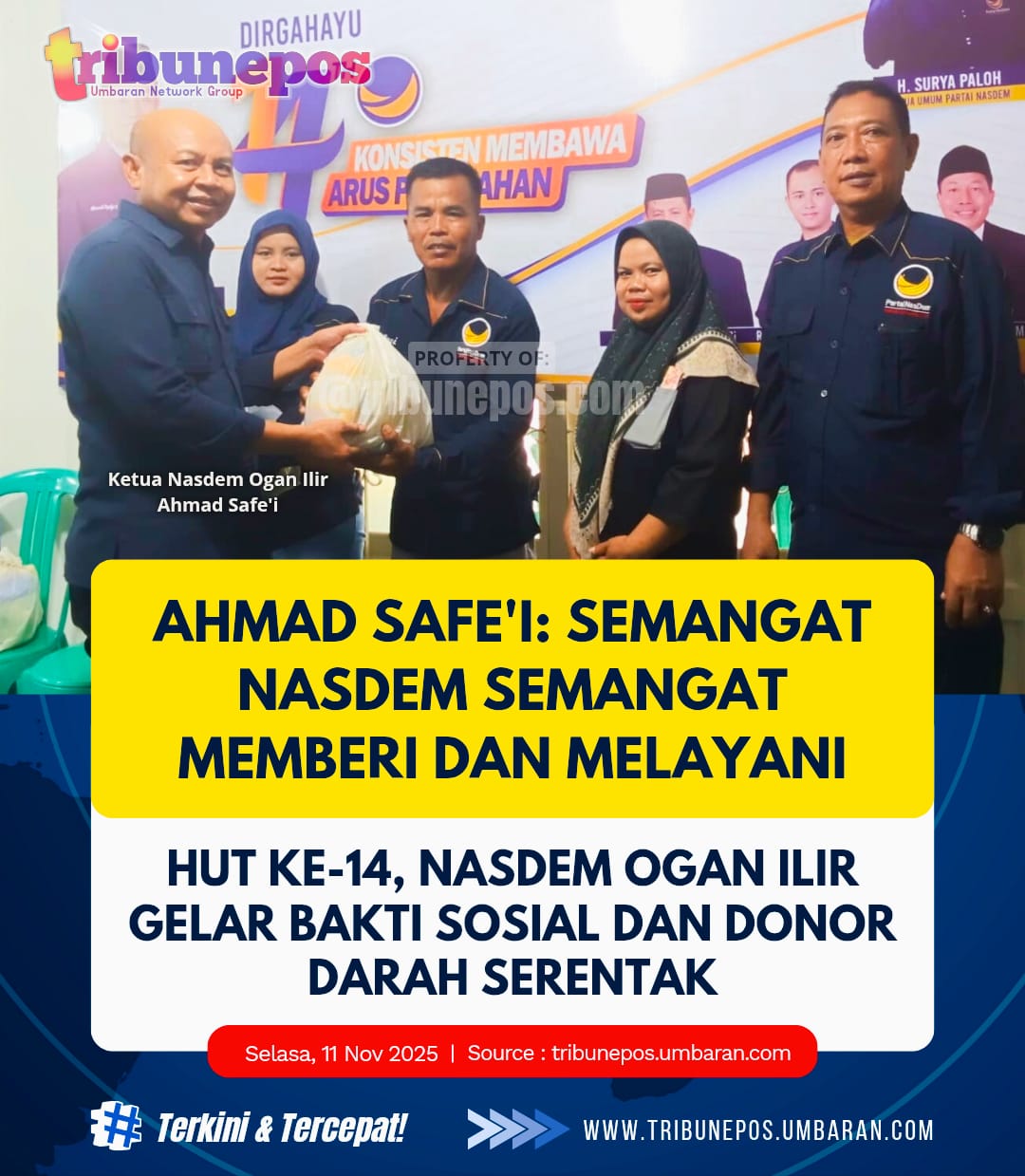 OGAN ILIR, TRIBUNEPOS — Pagi itu, Selasa (11/11/25) suasana di Kantor Partai Nasdem Kabupaten Ogan Ilir tampak lebih ramai dari biasanya. Bukan sekadar perayaan ulang tahun partai, tetapi juga wujud kepedulian sosial.