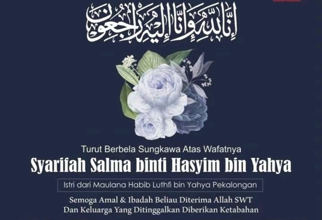 TRIBUNEPOS.UMBARAN.COM|| Istri Habib Luthfi bin Yahya, Syarifah Salma binti Hasyim bin Yahya dikabarkan meninggal dunia pada Selasa (28/5/2024) malam pukul 21.55 WIB. Diketahui almarhumah meninggal dunia di Rumah Sakit Budi Rahayu, Kota Pekalongan, Jawa Tengah.