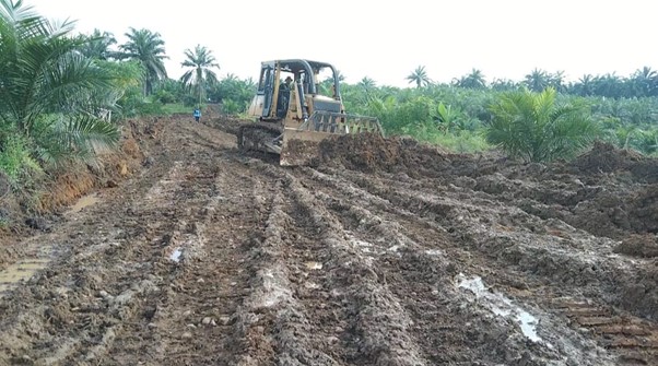 Pengerjaan jalan antar desa menggunakan alat berat