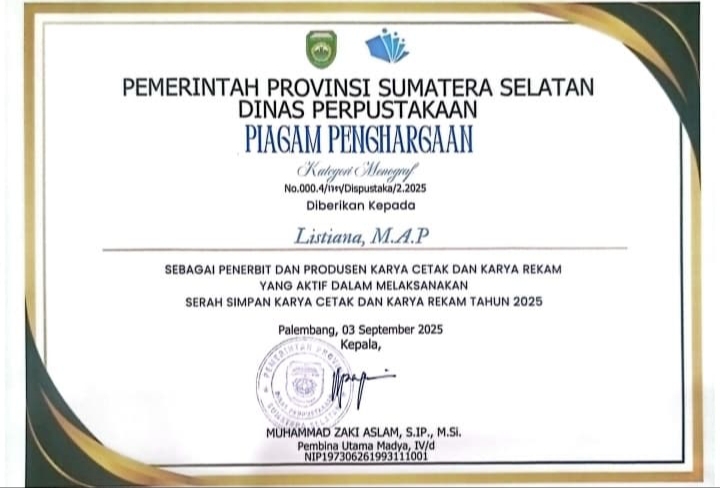 Novel karya Listiana diserahkan secara resmi ke Perpustakaan Daerah Provinsi Sumatera Selatan dan disimpan sebagai bagian dari kekayaan literasi daerah.
