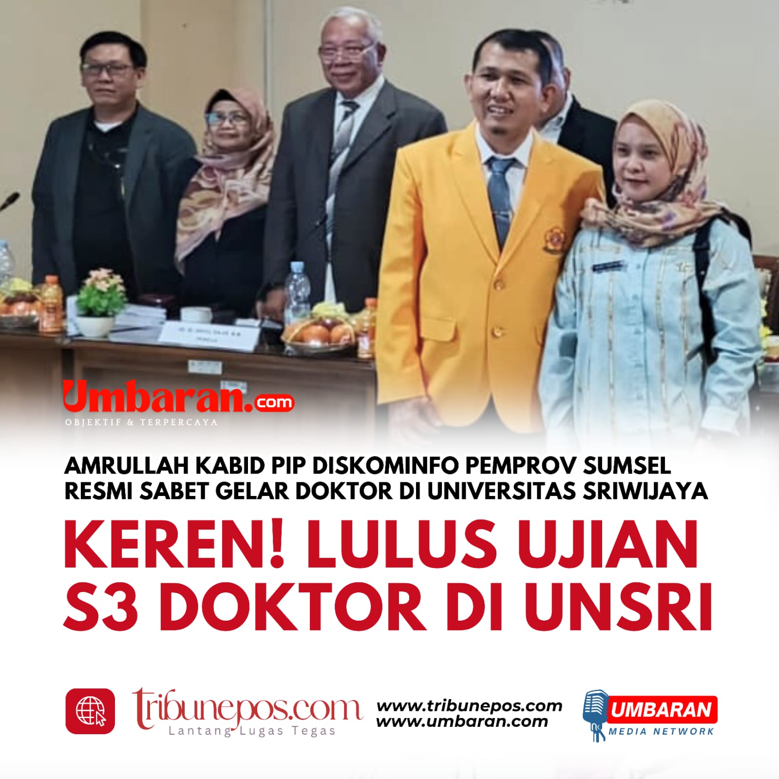 PALEMBANG, TRIBUNEPOS – Dalam pencapaian yang mengesankan, Kepala Bidang Pengelolaan Informasi Publik (PIP) Dinas Komunikasi dan Informatika (Diskominfo) Sumatera Selatan, Amrullah sukses meraih gelar doktor dari Universitas Sriwijaya (Unsri).