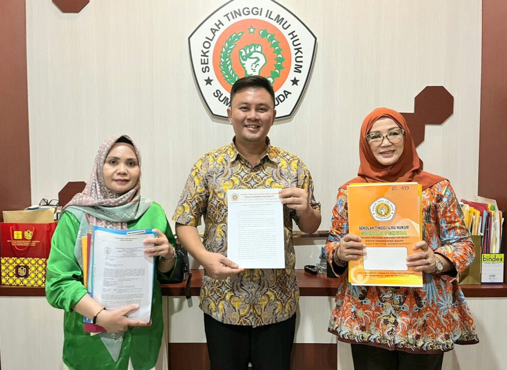Ketua STIHPADA, Assoc. Prof. Dr. H. Firman Freaddy Busroh, S.H., M.Hum, C.T.L (Tengah) saat menunjukkan bukti fakta status akademik M. Toha Tohet adalah benar alumni S1 Hukum di Sekolah Tinggi Ilmu Hukum Sumpah Pemuda (STIHPADA) Palembang. (Dok. Tribunepos.umbaran.com/ Foto: Istimewa)