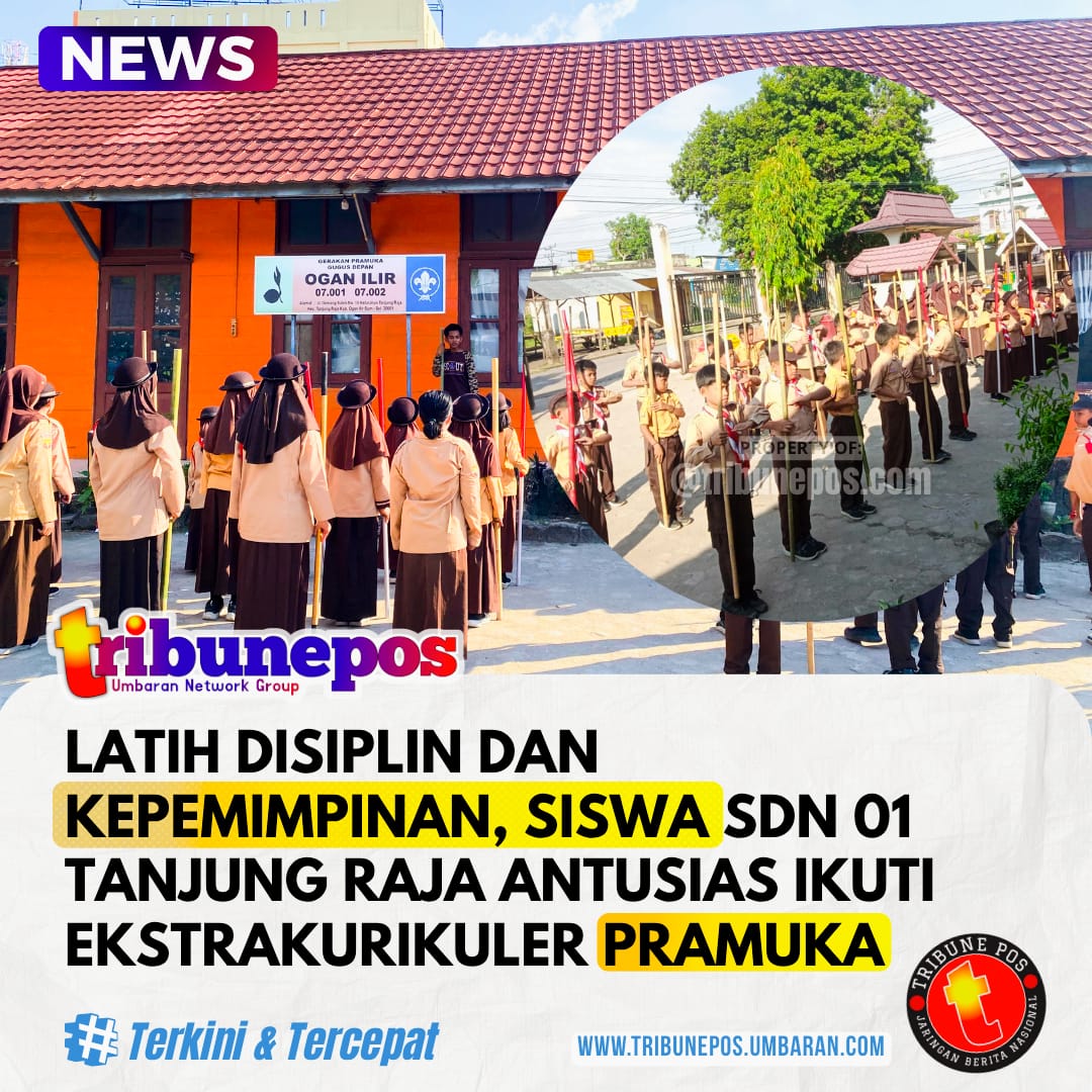 OGAN ILIR, TRIBUNEPOS — Suara derap langkah terdengar kompak di halaman SDN 01 Tanjung Raja setiap Jumat sore. Puluhan siswa dari kelas 4 hingga kelas 6 tampak berbaris rapi mengikuti aba-aba pembina dalam kegiatan latihan baris-berbaris Pramuka yang rutin digelar pukul 14.00 hingga 16.00 WIB.