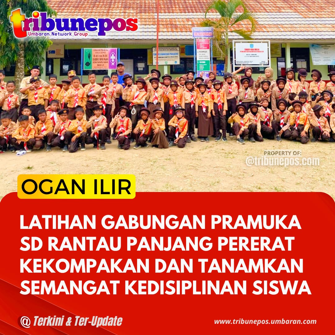 OGAN ILIR, TRIBUNEPOS — Ratusan siswa sekolah dasar di Kecamatan Rantau Panjang mengikuti kegiatan latihan gabungan Pramuka yang digelar di halaman SD Negeri 03 Rantau Panjang, Kabupaten Ogan Ilir, Sabtu (26/10/2025).