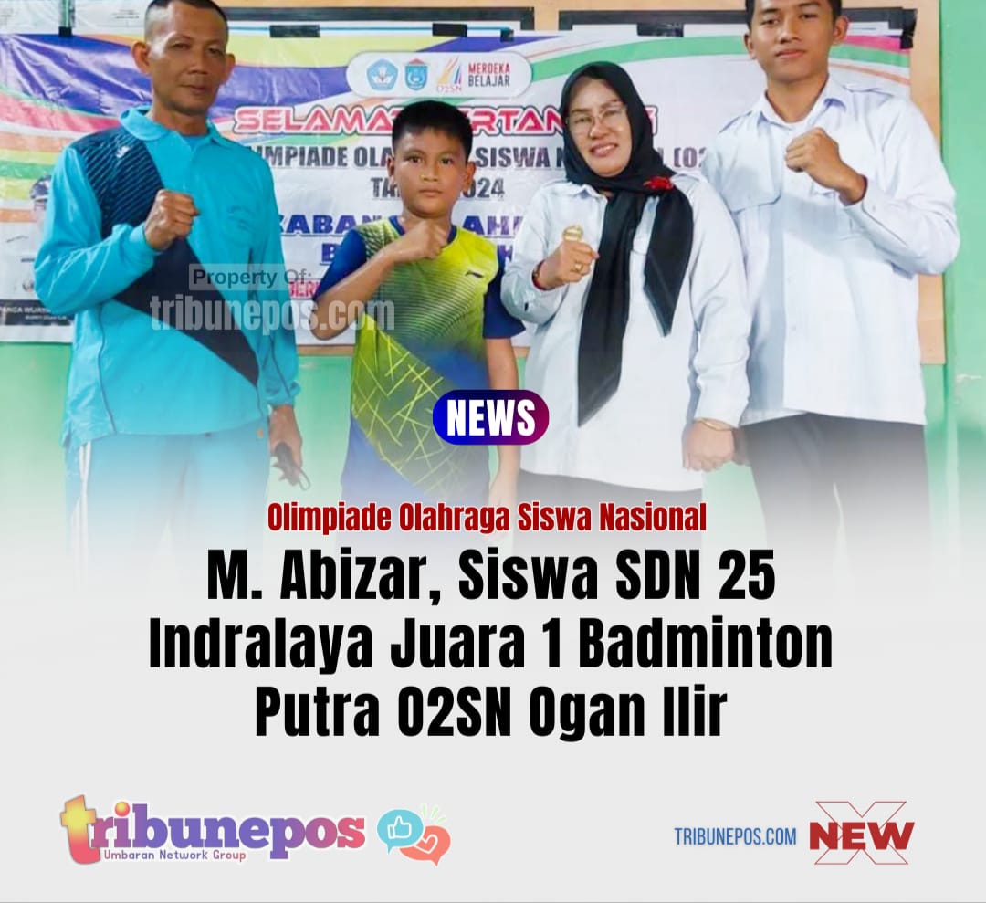 OGAN ILIR, TRIBUNEPOS – Riuh tepuk tangan bergema ketika nama M. Abizar, siswa kelas 4 SD Negeri 25 Indralaya, diumumkan sebagai Juara 1 cabang badminton putra tingkat SD dalam ajang Olimpiade Olahraga Siswa Nasional (O2SN) Kabupaten Ogan Ilir 2024.