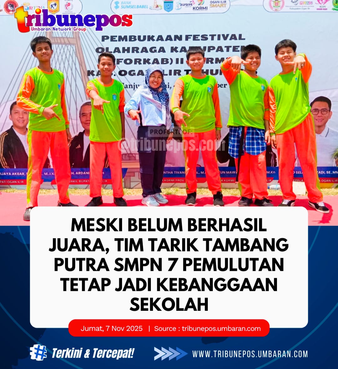 OGAN ILIR, TRIBUNEPOS — Meski belum berhasil membawa pulang gelar juara, tim Tarik Tambang Putra SMP Negeri 7 Pemulutan tetap menjadi kebanggaan sekolah dalam ajang Pekan Olahraga Kabupaten (PORKAB) Ogan Ilir yang digelar Selasa (4/11/2025).