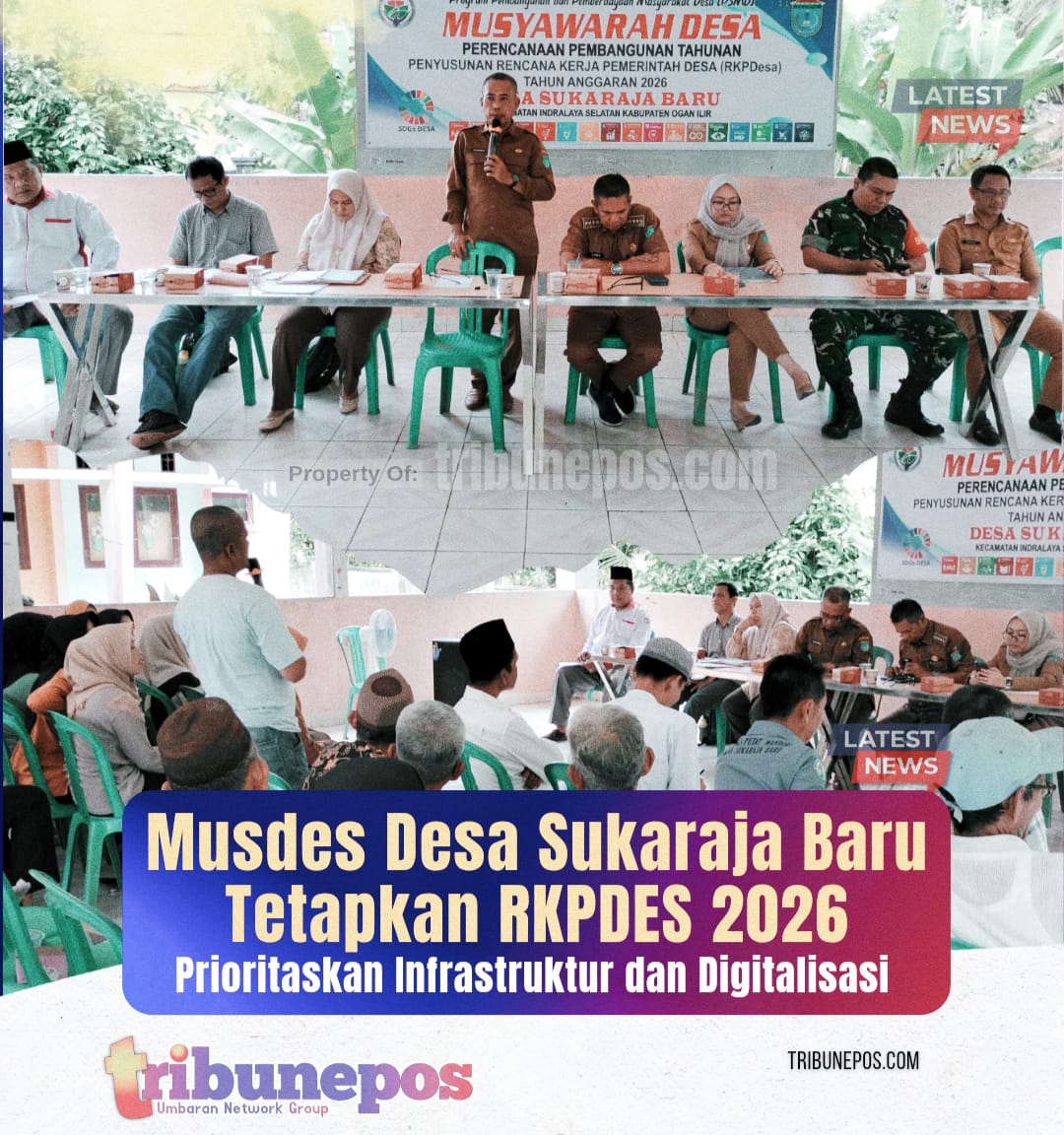 OGAN ILIR, TRIBUNEPOS — Pemerintah Desa Sukaraja Baru bersama Badan Permusyawaratan Desa (BPD) Sukaraja Baru, Kecamatan Indralaya Selatan, Ogan Ilir, menggelar Musyawarah Desa (Musdes) penetapan Rencana Kerja Pemerintah Desa (RKPDES) tahun 2026, Selasa(2/9/25).
