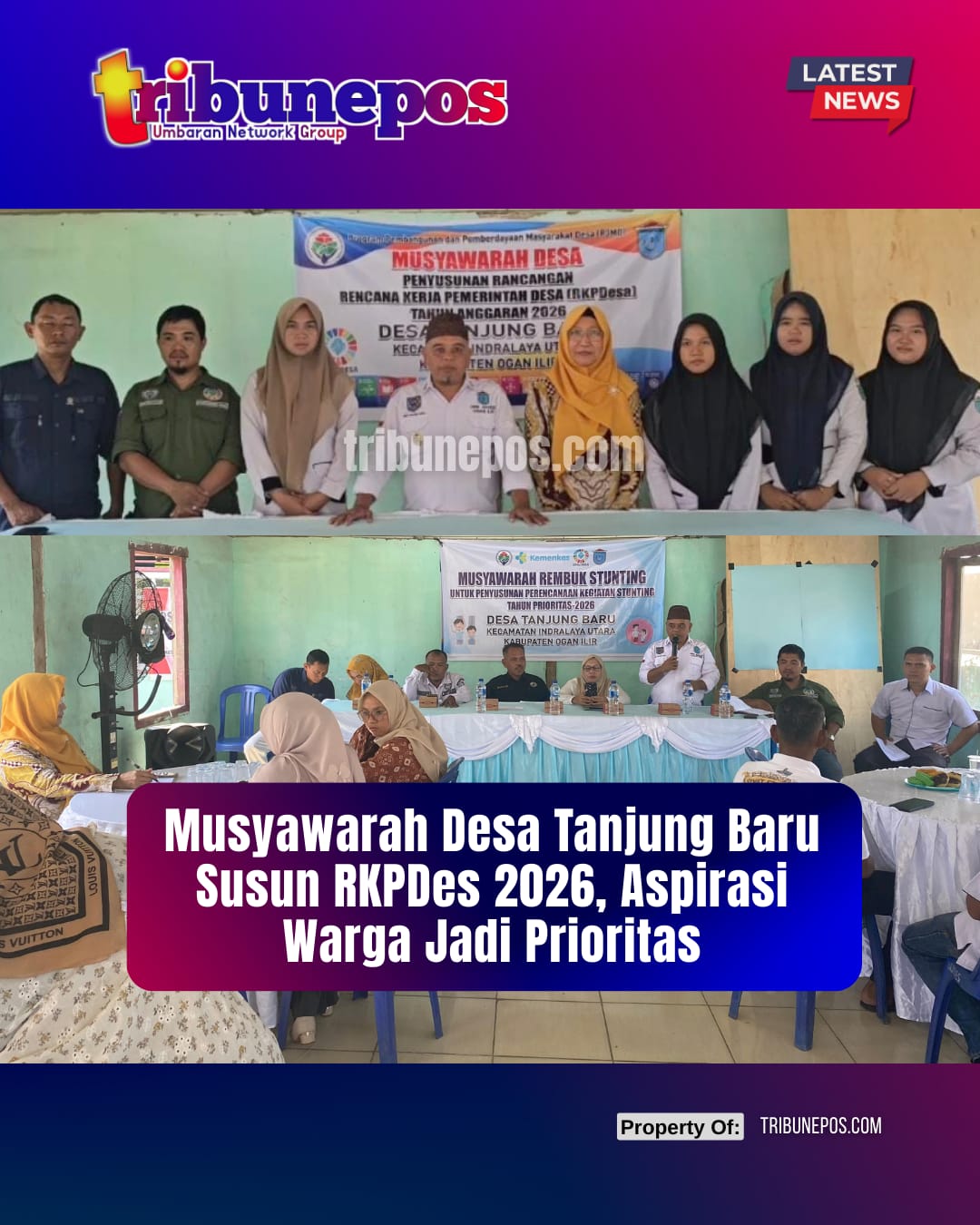 TRIBUNEPOS, TRIBUNEPOS — Pemerintah Desa Tanjung Baru, Kecamatan Indralaya Utara, Ogan Ilir, menggelar musyawarah desa untuk menyusun Rencana Kerja Pemerintah Desa (RKPDes) tahun anggaran 2026, Rabu (27/8/2025).