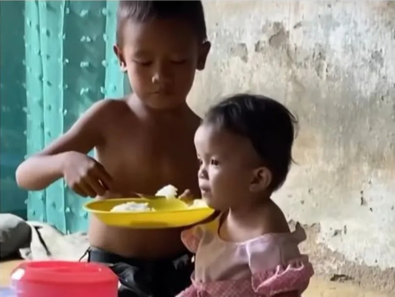 Mereka tak segan duduk hingga tidur beralaskan tanah seadanya. Dengan tangan kecilnya, bocah lelaki itu merawat adiknya dengan sepenuh hati. Dalam unggahan video, sang kakak terlihat beberapa kali menyuapi adiknya.
