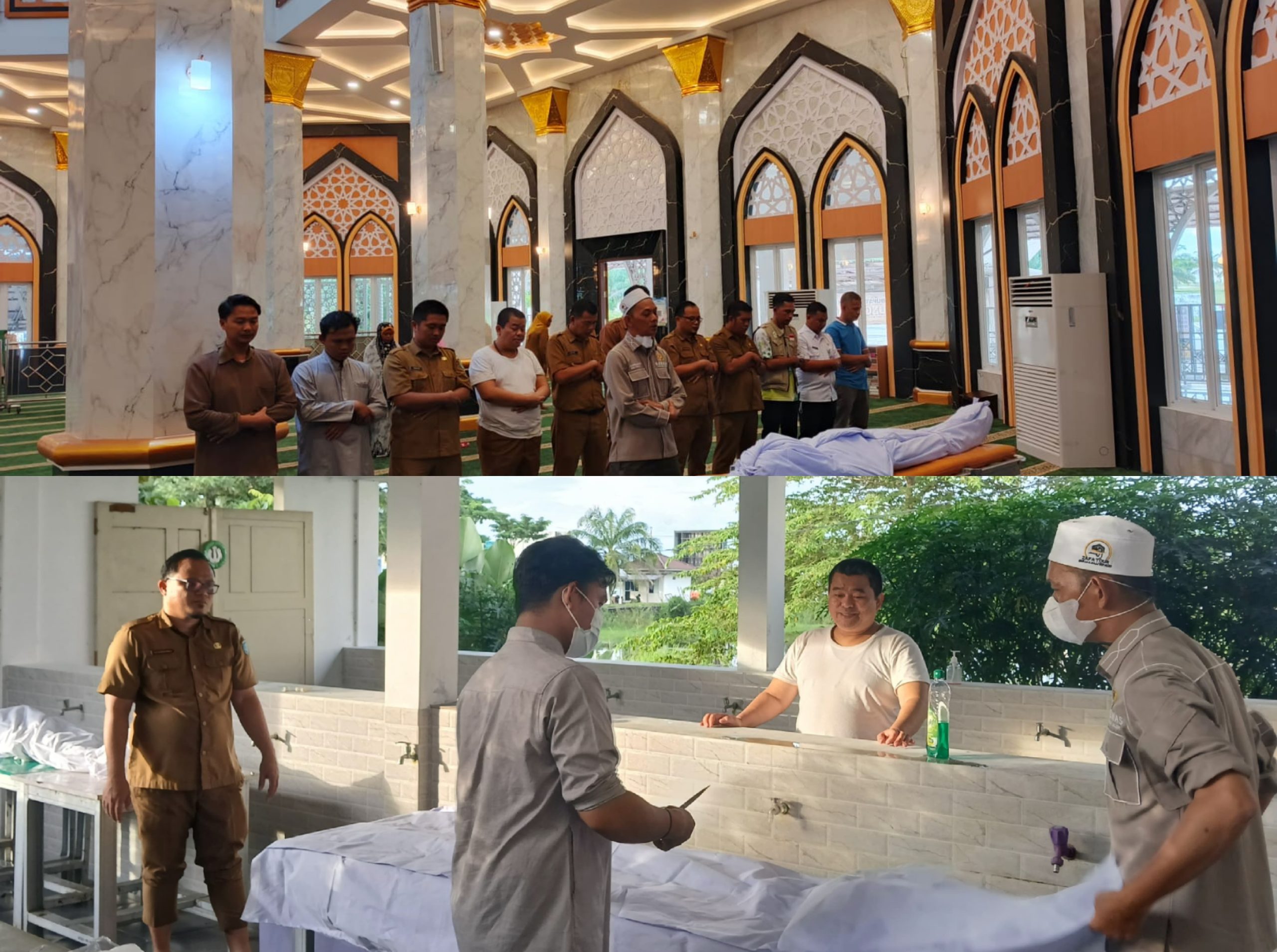 Kepala Dinas Sosial Kabupaten Ogan Ilir, H. Heriyanto, bersama jajaran staf Dinas Sosial, memimpin langsung prosesi pemulasaran yang turut dibantu Ustadz Suhaimi sebagai tokoh agama dan masyarakat.