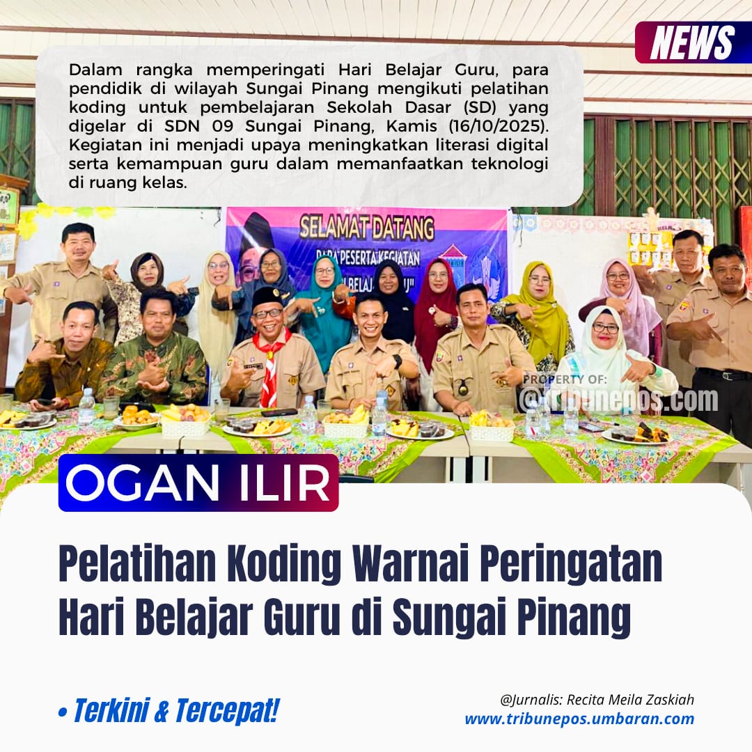 OGAN ILIR, TRIBUNEPOS — Dalam rangka memperingati Hari Belajar Guru, para pendidik di wilayah Sungai Pinang mengikuti pelatihan koding untuk pembelajaran Sekolah Dasar (SD) yang digelar di SDN 09 Sungai Pinang, Kamis (16/10/2025).