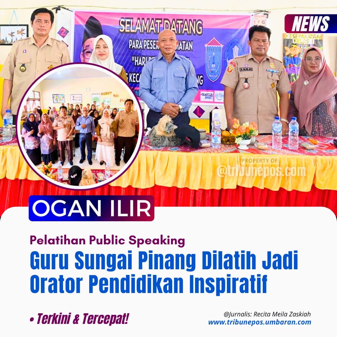 OGAN ILIR, TRIBUNEPOS — Suasana penuh semangat dan antusiasme mewarnai kegiatan pelatihan public speaking bagi para guru yang digelar di SDN 13 Sungai Pinang, Kamis (9/10/2025).