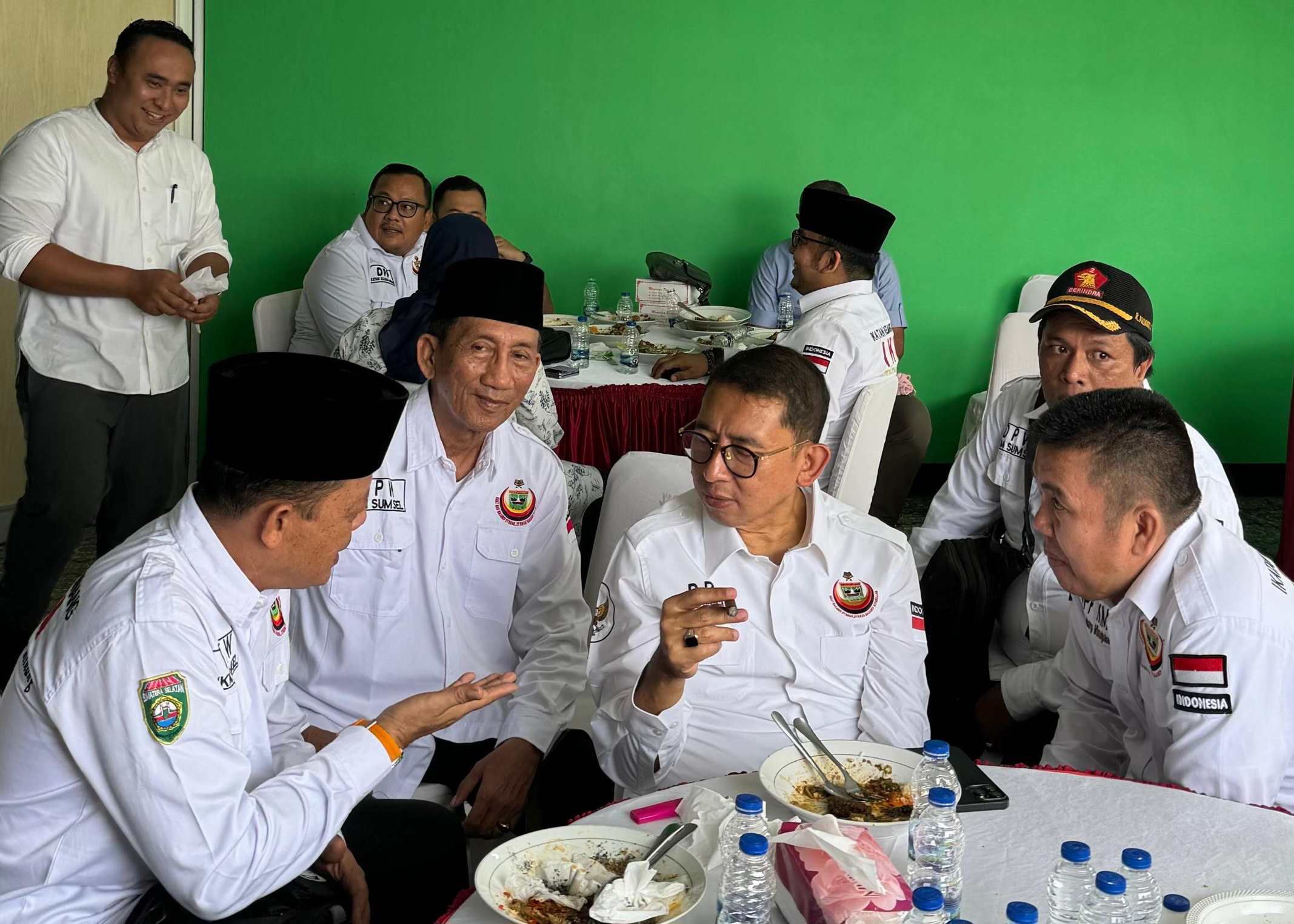 Ketua IKM Sumatera Selatan, Aljufri bersama pengurus terlihat sedang berbicara dengan Padli Zon, Ketua IKM Pusat pada acara peringatan Milad IKM ke-8 sekaligus HUT RI ke-79 yang digelar oleh Dewan Pimpinan Pusat IKM di Aula Gedung Pertemuan Kramat Djati, Jakarta Timur, pada Minggu, 11 Agustus 2024. (Dok. Tribunepos.umbaran.com)