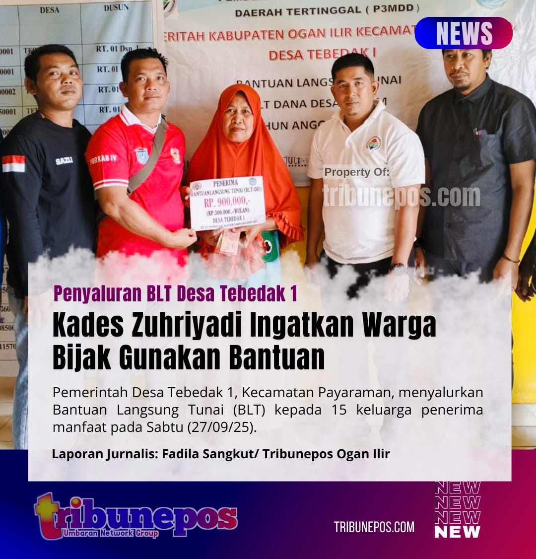 OGAN ILIR, TRIBUNEPOS – Pemerintah Desa Tebedak 1, Kecamatan Payaraman, menyalurkan Bantuan Langsung Tunai (BLT) kepada 15 keluarga penerima manfaat pada Sabtu (27/09/25).