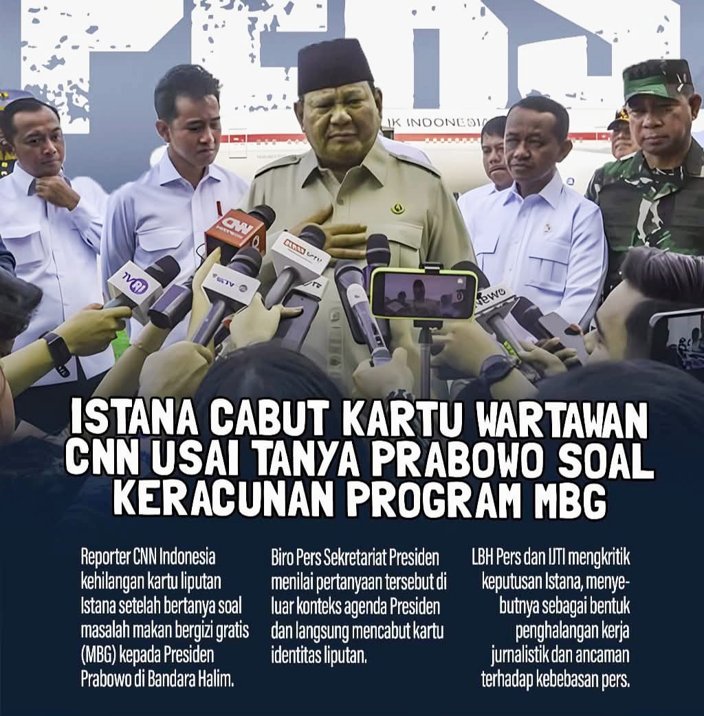 Namun bagi kalangan pers, isu ini lebih dari sekadar sengketa administrasi. Pencabutan kartu liputan wartawan karena pertanyaan kritis bisa menjadi preseden buruk bagi kebebasan pers di era Prabowo. **