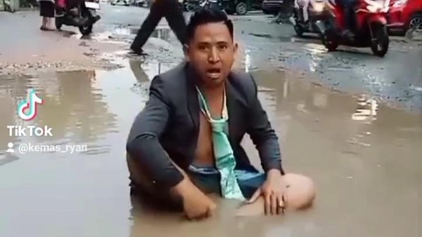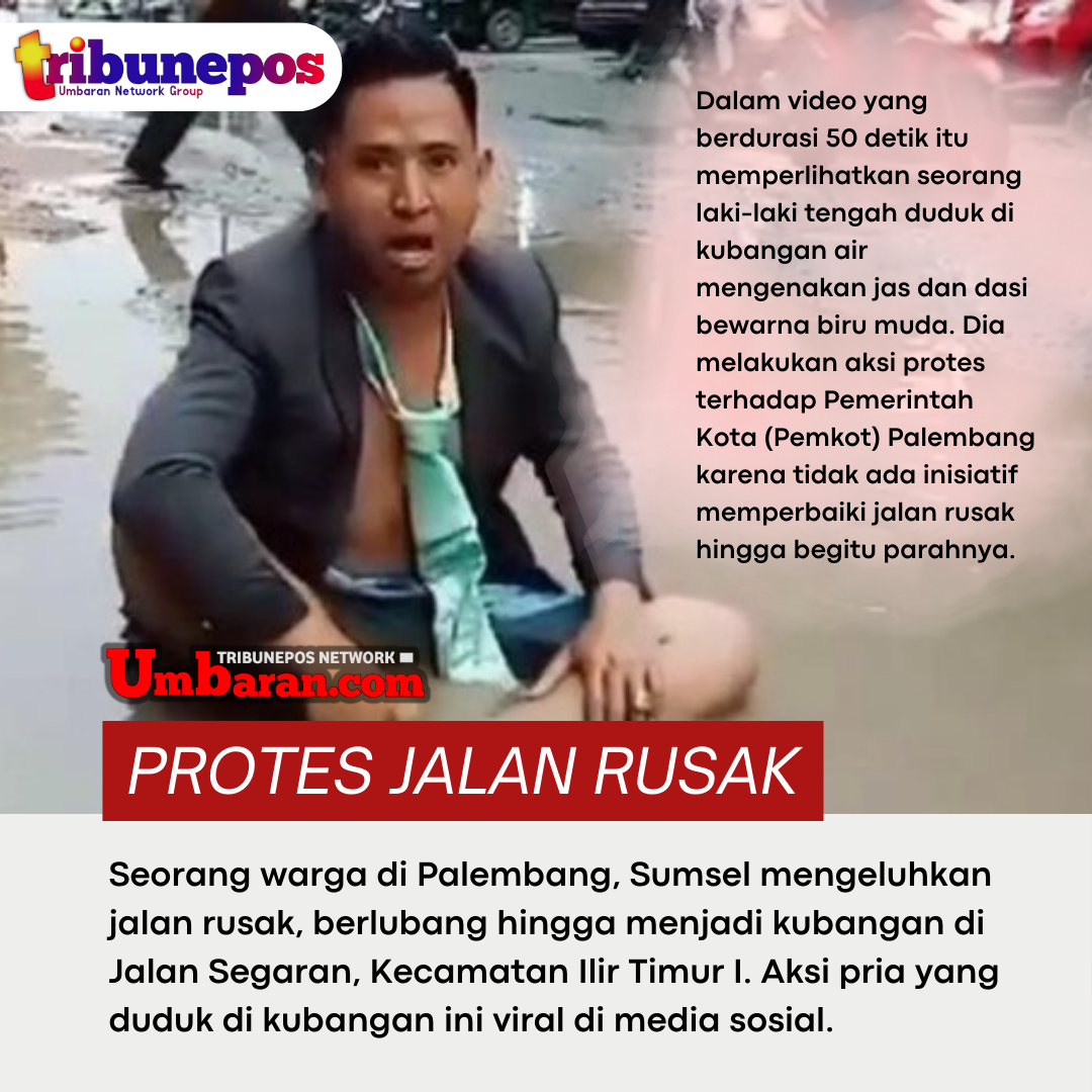 Dalam video yang berdurasi 50 detik tersebut memperlihatkan seorang laki-laki tengah duduk di kubangan air mengenakan jas dan dasi bewarna biru muda. Dia melakukan aksi protes terhadap Pemerintah Kota (Pemkot) Palembang karena tidak ada inisiatif memperbaiki jalan rusak hingga begitu parahnya.