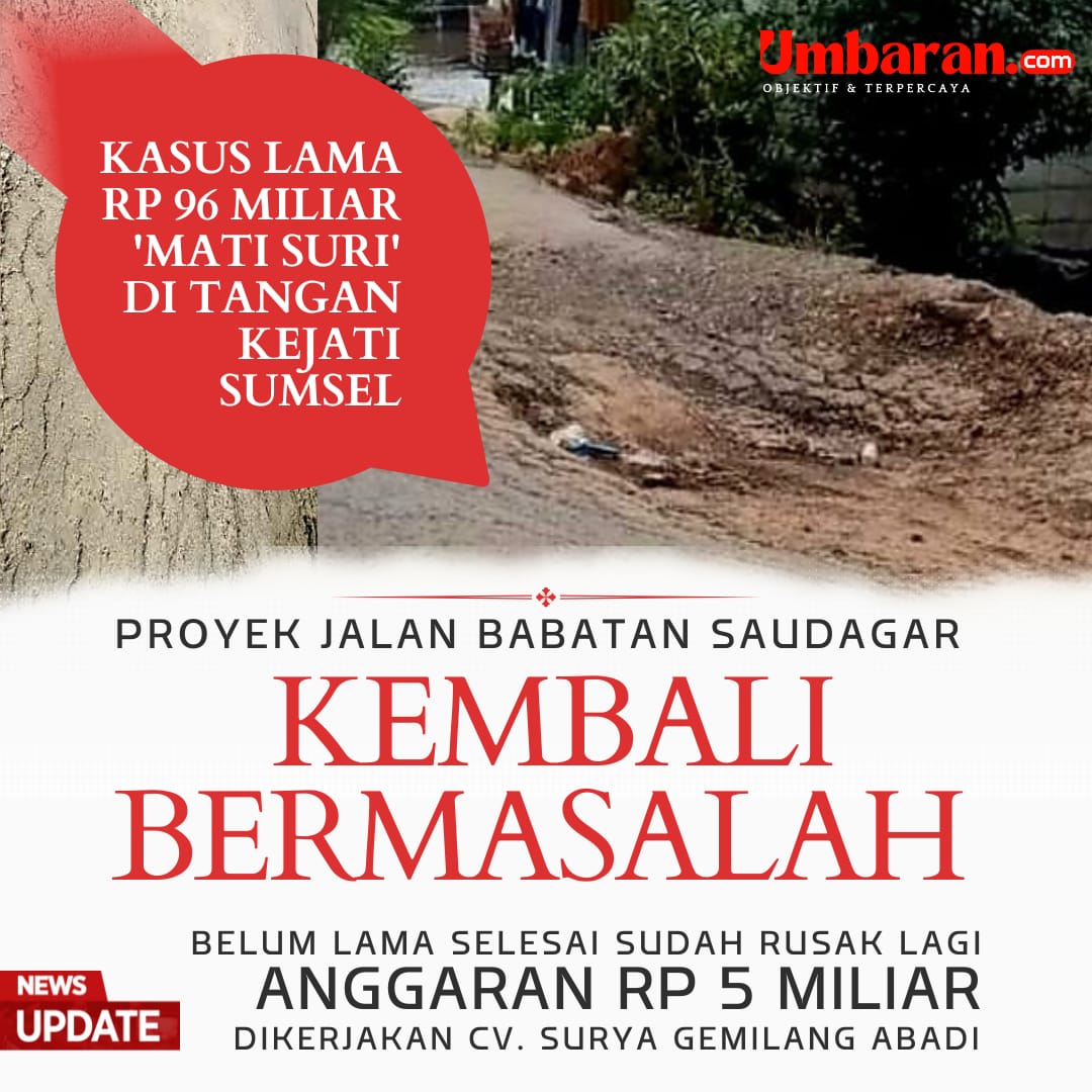 Proyek Jalan Babatan Ogan Ilir Saudagar Kembali Bermasalah, Baru Beberapa Bulan Rusak Lagi: Kasus Lama 'Mati Suri' di Tangan Kejati. (Dok. Tribunepos.umbaran.com)