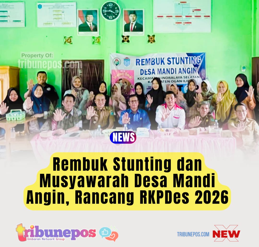 OGAN ILIR, TRIBUNEPOS – Pemerintah Desa Mandi Angin, Kecamatan Indralaya Selatan, Ogan Ilir, menggelar rembuk stunting sekaligus Musyawarah Desa untuk perencanaan pembangunan tahunan dan penyusunan Rencana Kerja Pemerintah Desa (RKPDes) Tahun Anggaran 2026, Senin (22/9/25).