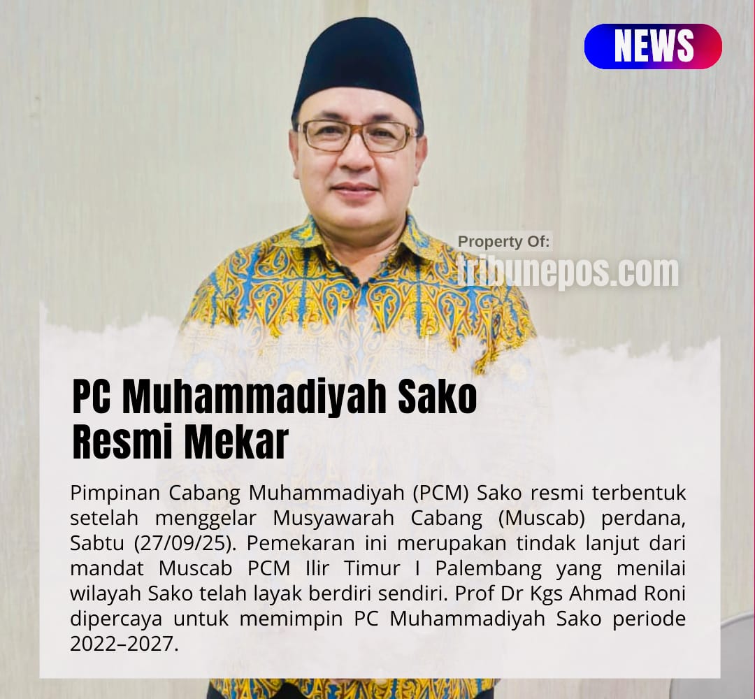 PALEMBANG, TRIBUNEPOS — Pimpinan Cabang Muhammadiyah (PCM) Sako resmi terbentuk setelah menggelar Musyawarah Cabang (Muscab) perdana, Sabtu (27/09/25). Pemekaran ini merupakan tindak lanjut dari mandat Muscab PCM Ilir Timur I Palembang yang menilai wilayah Sako telah layak berdiri sendiri.