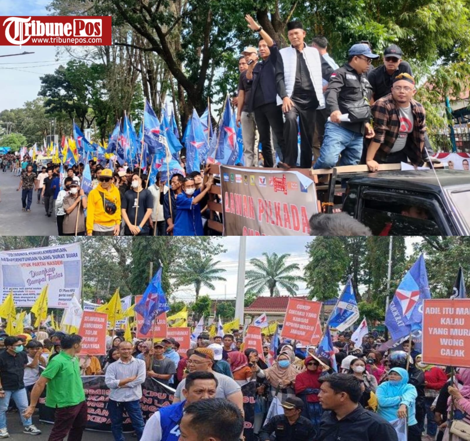 LAHAT, TRIBUNEPOS.COM — Ribuan massa yang berasal dari sebelas partai politik serta sejumlah organisasi masyarakat di Kabupaten Lahat turun ke jalan, Kamis (8/8/24).