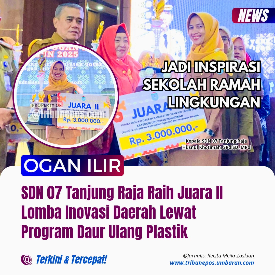 OGAN ILIR, TRIBUNEPOS — SDN 07 Tanjung Raja menorehkan prestasi membanggakan dengan meraih Juara II dalam Lomba Inovasi Daerah Kabupaten Ogan Ilir Tahun 2025.