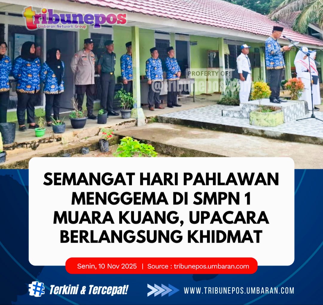OGAN ILIR, TRIBUNEPOS — Dentang semangat perjuangan menggema di lapangan SMP Negeri 1 Muara Kuang, Senin (10/11/2025) pagi. Ratusan siswa, guru, dan tamu undangan larut dalam suasana khidmat memperingati Hari Pahlawan Nasional 2025 bertema “Pahlawanku Teladanku, Terus Bergerak, Melanjutkan Perjuangan.”