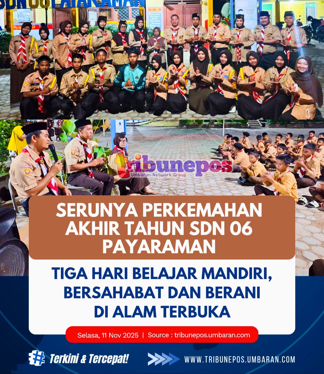 OGAN ILIR, TRIBUNEPOS – Suara tenda berderak, riuh anak-anak bernyanyi di bawah langit malam, dan gemerlap api unggun menjadi pemandangan khas di halaman SDN 06 Payaraman akhir pekan lalu. Sekolah ini menggelar Perkemahan Akhir Tahun 2025, kegiatan yang sudah lama dinantikan seluruh siswa.
