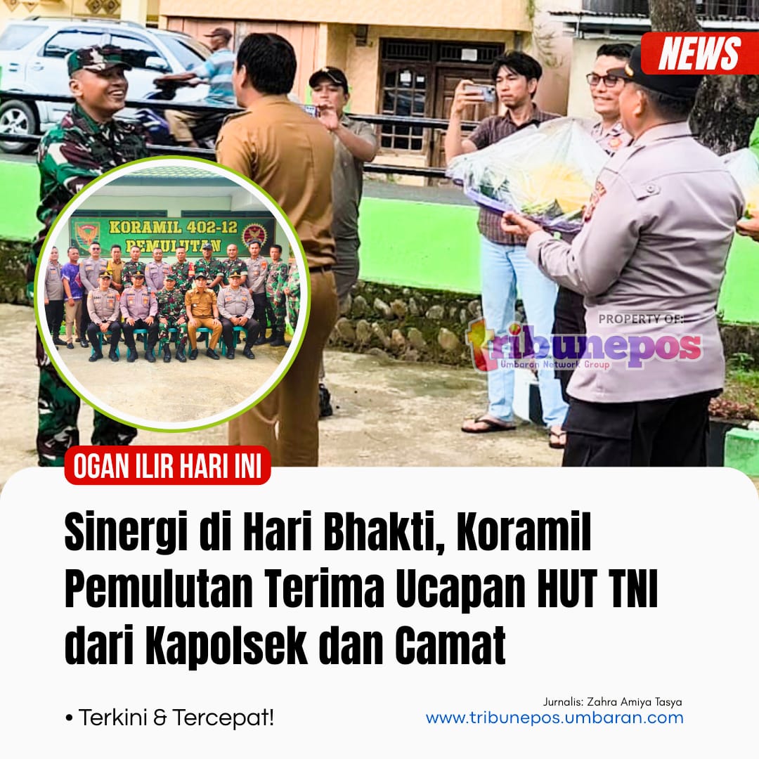 OGAN ILIR, TRIBUNEPOS — Suasana hangat menyelimuti Markas Koramil 402-12/Pemulutan pada Senin siang (6/10/25). Sekitar pukul 14.00 WIB, rombongan dari Polsek Pemulutan dan Pemerintah Kecamatan Pemulutan datang membawa sebuah tumpeng sebagai simbol ucapan selamat Hari Ulang Tahun ke-80 Tentara Nasional Indonesia (TNI).
