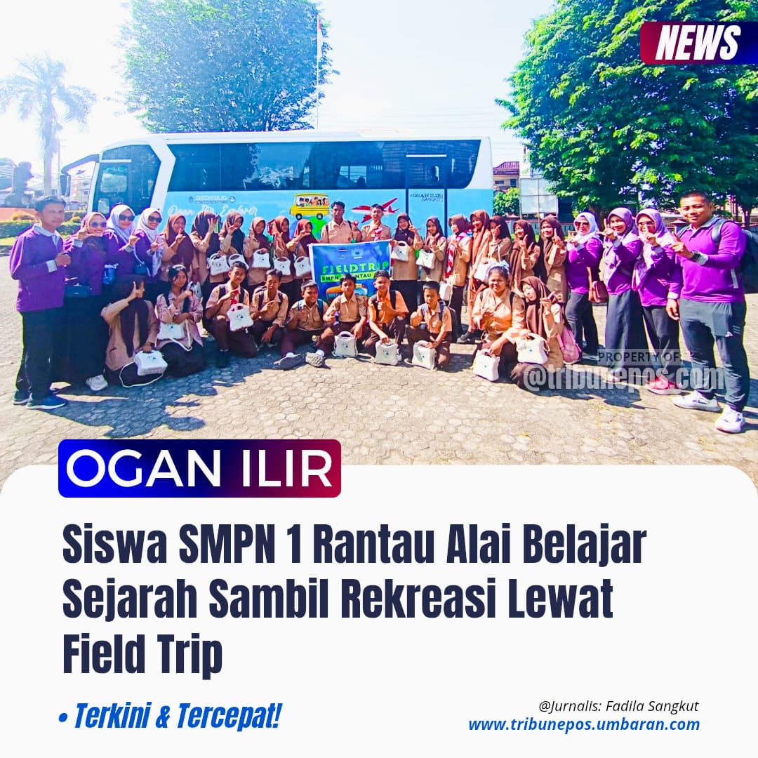 PALEMBANG, TRIBUNEPOS — Puluhan siswa SMP Negeri 1 Rantau Alai mengikuti kegiatan field trip ke sejumlah destinasi edukatif di Kota Palembang, Selasa (24/09/25) lalu. Kegiatan tahunan yang difasilitasi Dinas Pendidikan dan Kebudayaan Kabupaten Ogan Ilir itu menjadi ajang pembelajaran di luar kelas sekaligus rekreasi bagi para pelajar.