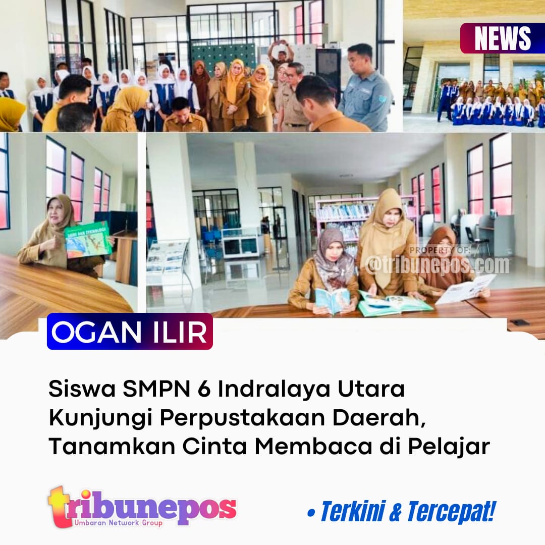 OGAN ILIR, TRIBUNEPOS — Suasana Perpustakaan Daerah Kabupaten Ogan Ilir tampak lebih ramai dari biasanya. Rombongan siswa SMP Negeri 6 Indralaya Utara datang berkunjung dalam kegiatan kunjungan edukatif literasi yang digelar untuk menumbuhkan minat baca dan memperkenalkan fasilitas literasi publik kepada pelajar, Selasa (07/10/25).