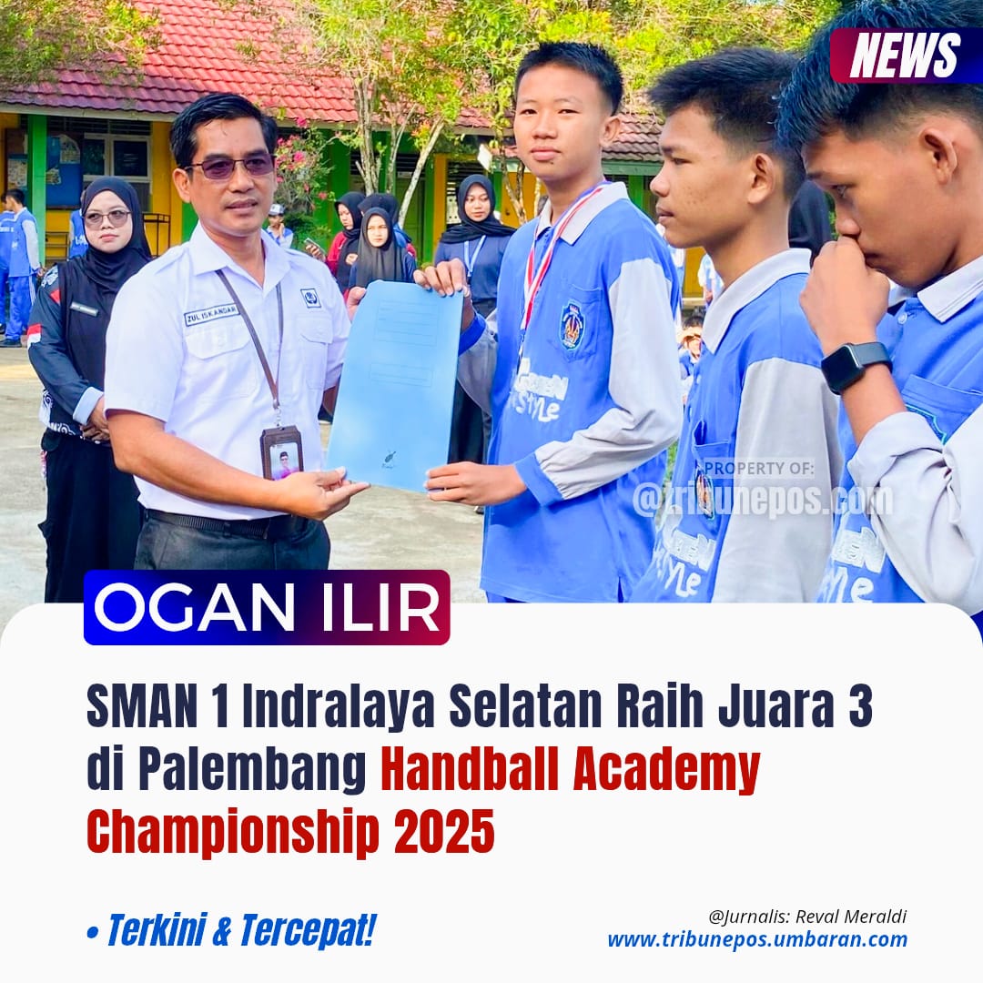 OGAN ILIR, TRIBUNEPOS — Prestasi membanggakan kembali ditorehkan oleh siswa SMA Negeri 1 Indralaya Selatan. Dalam ajang Palembang Handball Academy Championship 2025 yang digelar di GOR Jakabaring Sport City, Sabtu–Minggu (11–12 Oktober 2025), tim Caram Ogan Ilir, yang diperkuat oleh 9 siswa-siswi sekolah tersebut dan campuran siswa dari sekolah lain, berhasil meraih Juara 3.
