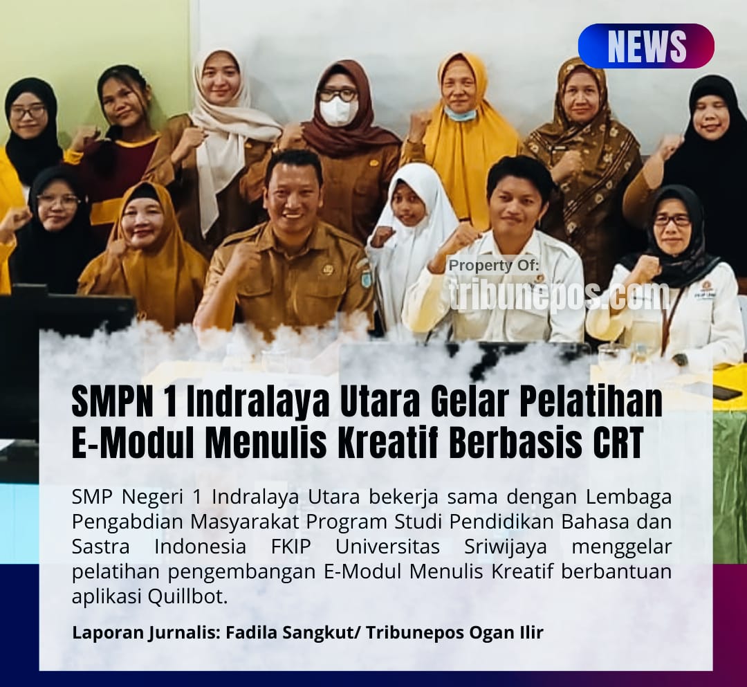 OGAN ILIR, TRIBUNEPOS — SMP Negeri 1 Indralaya Utara bekerjasama dengan Lembaga Pengabdian Masyarakat Program Studi Pendidikan Bahasa dan Sastra Indonesia FKIP Universitas Sriwijaya menggelar pelatihan pengembangan E-Modul Menulis Kreatif berbantuan aplikasi Quillbot.