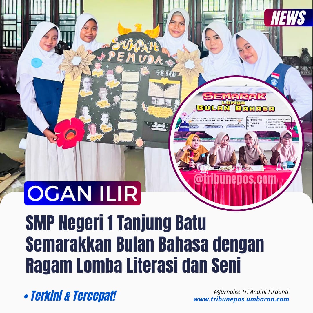 OGAN ILIR, TRIBUNEPOS — Dalam rangka memperingati Bulan Bahasa dan Hari Sumpah Pemuda, SMP Negeri 1 Tanjung Batu menggelar serangkaian lomba bertema literasi dan kebangsaan. Kegiatan yang dimulai sejak 13-16 Oktober 2025 ini diikuti oleh seluruh siswa dengan antusias, dan akan mencapai puncaknya pada 28 Oktober mendatang.