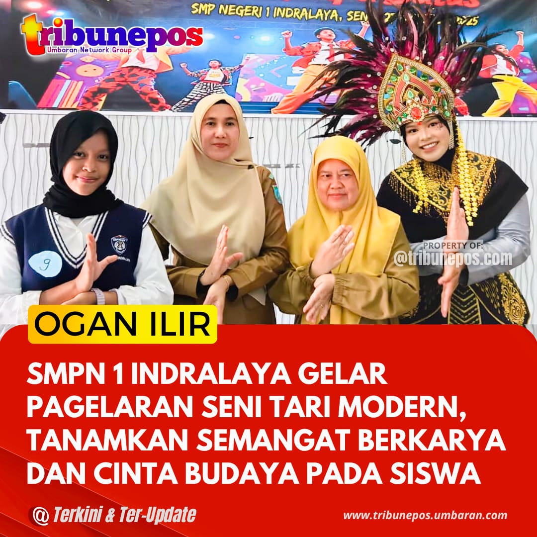 OGAN ILIR, TRIBUNEPOS — Suasana Aula SMP Negeri 1 Indralaya tampak semarak pada Senin (27/10/2025) siang. Alunan musik modern berpadu dengan gerak lincah para penari muda dalam Pagelaran Seni Tari Modern yang untuk pertama kalinya digelar di sekolah tersebut.
