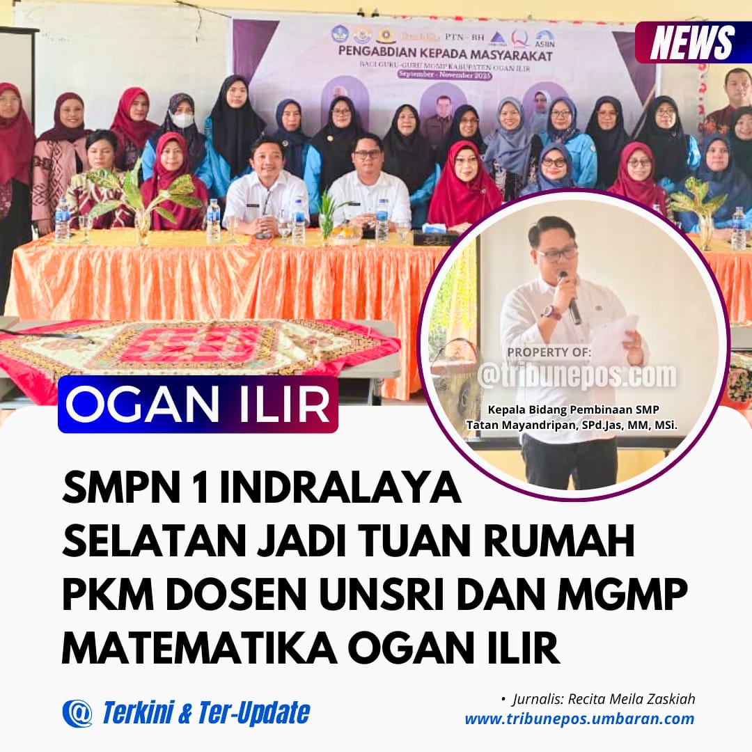 OGAN ILIR, TRIBUNEPOS – SMP Negeri 1 Indralaya Selatan menjadi tuan rumah kegiatan Pengabdian kepada Masyarakat (PKM) Dosen Universitas Sriwijaya (Unsri) bekerja sama dengan Musyawarah Guru Mata Pelajaran (MGMP) Matematika SMP Kabupaten Ogan Ilir, Rabu (22/10/2025).