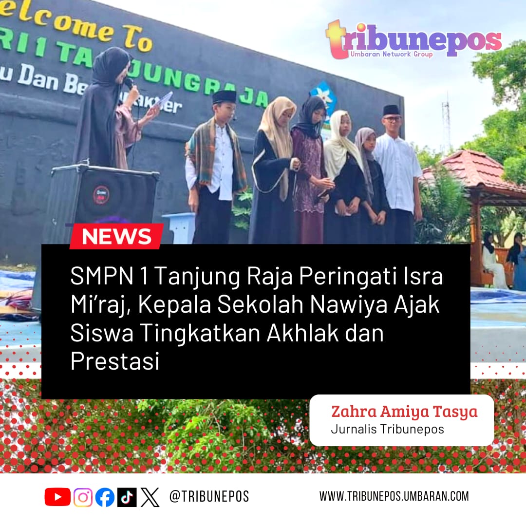 Kepala SMPN 1 Tanjung Raja, Nawiya, SPd, mengatakan peringatan Isra Mi’raj bukan sekadar seremonial, melainkan ajakan untuk melakukan perubahan positif dalam kehidupan sehari-hari.
