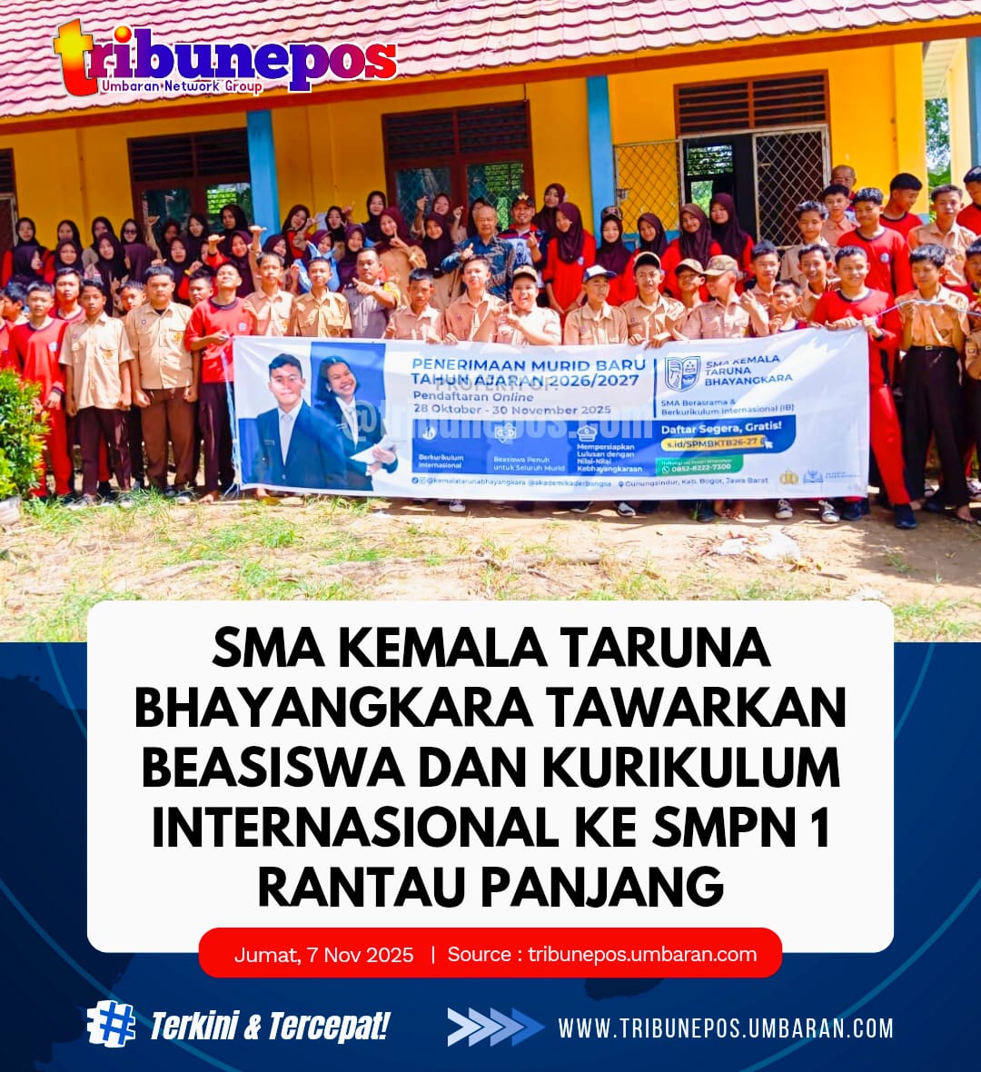 OGAN ILIR, TRIBUNEPOS — Siswa-siswi kelas IX SMP Negeri 1 Rantau Panjang tampak antusias mengikuti sosialisasi penerimaan murid baru (PMB) dari SMA Kemala Taruna Bhayangkara, Kamis (6/11/2025).